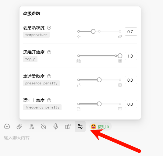 - 当需要问相同的问题得到相同的回答的时候可以把随机性调整为0,默认0.7适合绝大部分的场景