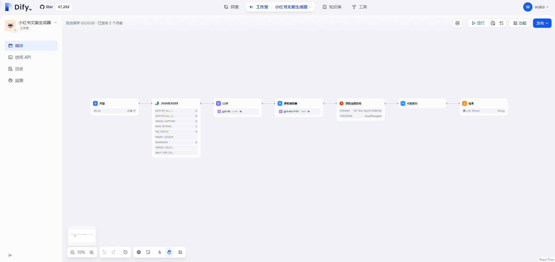 我们以小红书文案生成这个工作流来当例子: