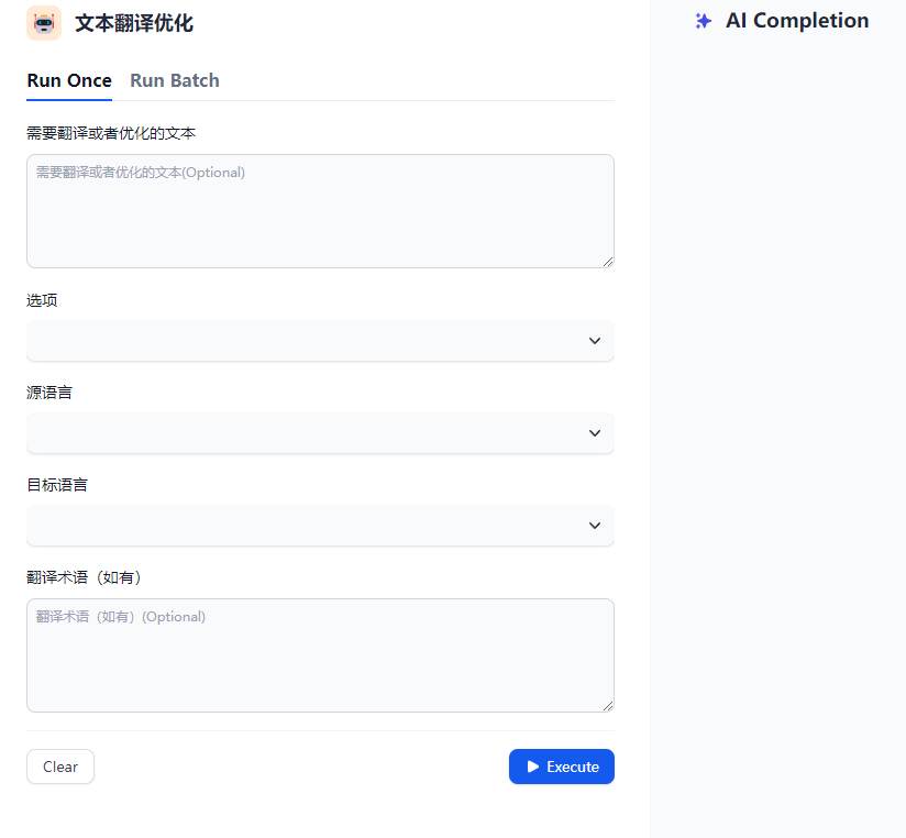 当搭建好一个工作流之后,我们会有一个前端的交互式的调用入口。在这个页面上,我们有在开始节点编写的输入框和按钮等。